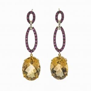 434. Paire de pendants d'oreilles sertis de citrines taille ovale reh...