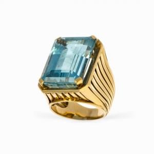 435. Bague sertie d'une aigue-marine taille émeraude (env 20 ct)