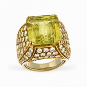 439. Bague sertie d'une tourmaline jaune taille émeraude (env 9 ct) e...