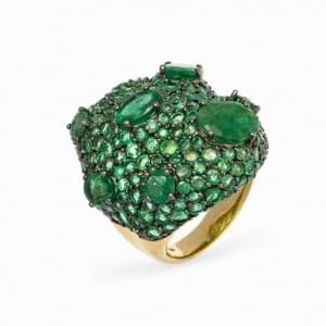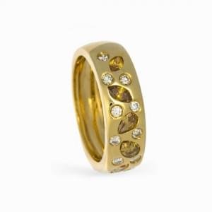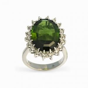 443. Bague sertie d'un cabochon de citrine entouré de tourmalines ver...