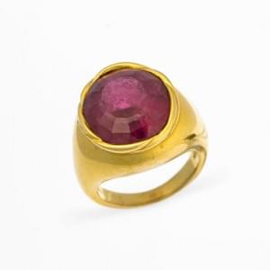 446. Bague chevalière sertie d'une tourmaline rose ovale (env 8 ct)