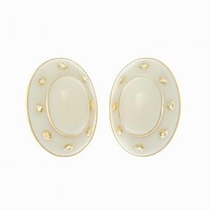 450. Paire de clips d'oreilles ovales sertis de corail blanc et de di...