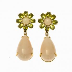 452. Paire de pendants d'oreilles à motif de fleur sertis de corail e...