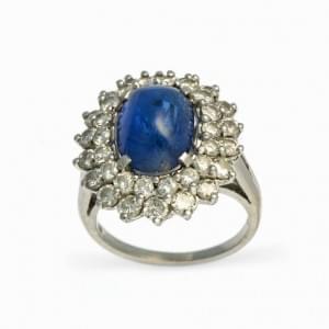 469. Bague sertie d'un saphir taille ovale entouré de diamants