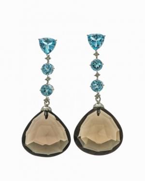 470. Paire de pendants d'oreilles sertis de quartz fumé rehaussés de...