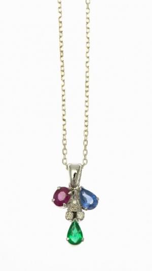 473. Pendentif serti d'une émeraude, d'un rubis, d'un saphir et de di...