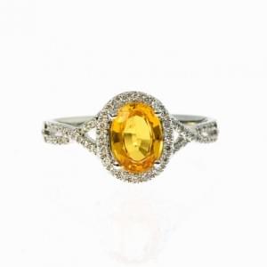 474. Bague sertie d'un saphir orange taille ovale entouré de diamants