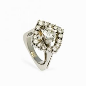 482. Bague sertie d'un diamant (env 0.9 ct) entouré de diamants