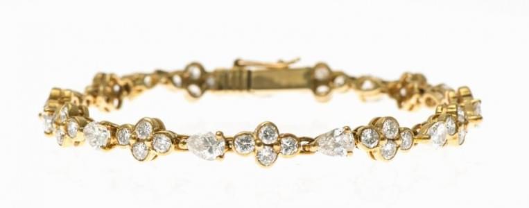 486. Bracelet ligne serti de diamants taille poire et taille brillant...