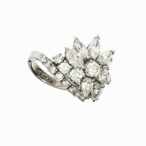 493. Bague sertie de diamants taille brillant, taille poire et taille...