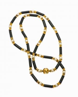496. Gilbert Albert, sautoir en onyx ponctué de perles et d'éléments...