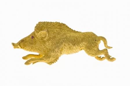 Or 750, années 60, 5.5 x5 cm, 25 g, dans son écrin