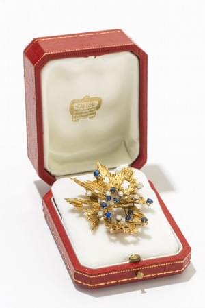 510. Cartier, broche stylisée sertie de saphirs et diamants