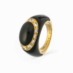 513. Van Cleef & Arpels, bague jonc en or et onyx sertie d'un entoura...