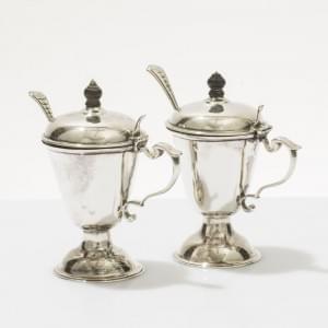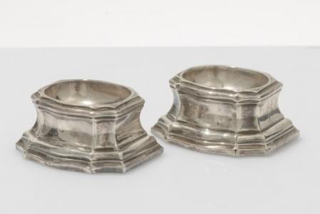 658. Paire de salerons ovales sur piédouche à pans coupés festonnés