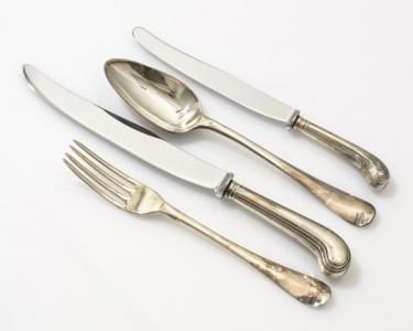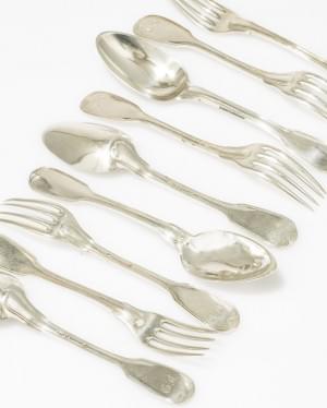 651. Ensemble de 8 fourchettes et 12 cuillères filet français monogra...