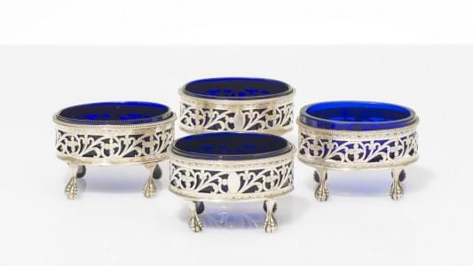 633. Suite de quatre salerons ovales ajourés de rinceaux d'époque Geo...