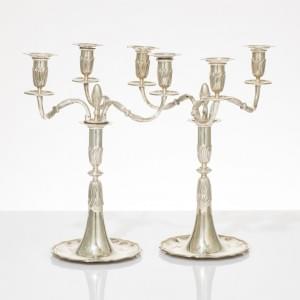 620. Paire de flambeaux balustres à décor gravé de lambrequins