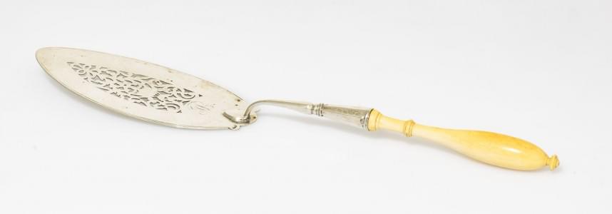 643. Pelle de service ajourée d'une urne et rinceaux, monogrammée JP