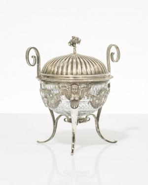 649. Confiturier néoclassique sur trois pieds sphynges à décor de vas...