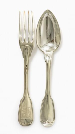 650. Trois cuillères et dix fourchettes d'époque Empire armoriées Sal...
