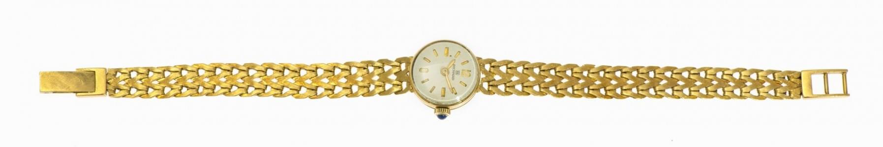 Cadran doré, index bâton et aiguilles dorés, or 750, bracelet en...