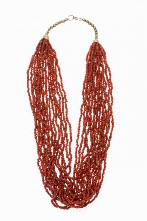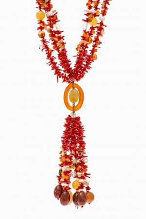 3041. Sautoir trois rangs de corail et pierres dures (agate, cornaline...