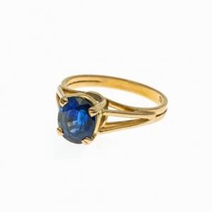 3061. Bague sertie d'une topaze bleue taille émeraude