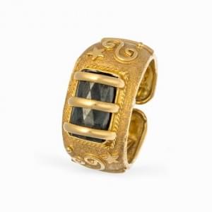3096. Bracelet jonc ouvrant à motif de têtes de serpent serti de saphi...