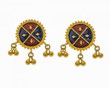 3067. Paire de boucles d'oreilles émaillées retenant des pampilles en...