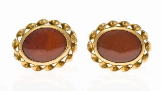 3035. Paire de boucles d'oreilles camée figurant des profils de femmes