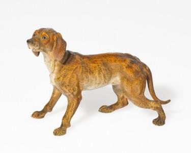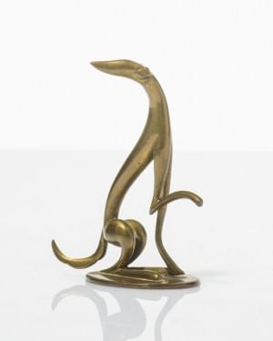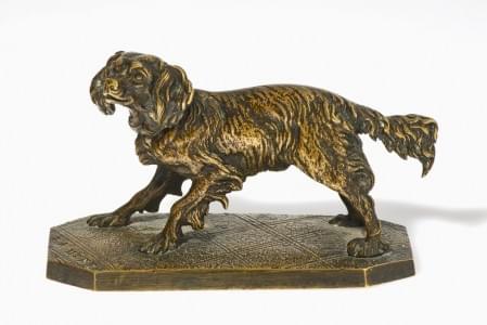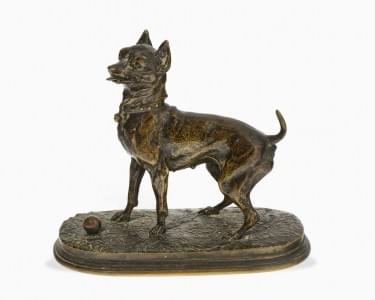 Petit chien à la balle, bronze à patine médaille, H 12 cm