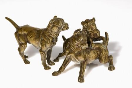Trois boxers, groupe en bronze à patine médaille, H 10 cm