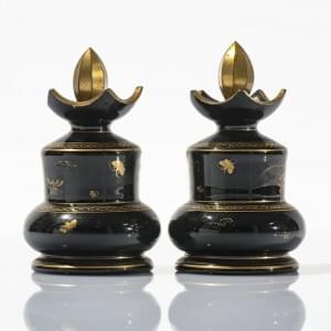 Cristal de Bohème à décor d'une scène de chasse, H 25,5 et 12 cm