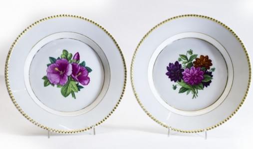 3117. Paire d'assiettes à bordure perlée et décor de fleurs