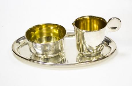 3123. Ensemble art déco composé d’un plateau, un sucrier, un crémier