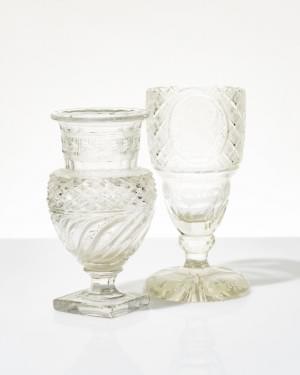 Cristal taillé et gravé, H 19 et 20 cm