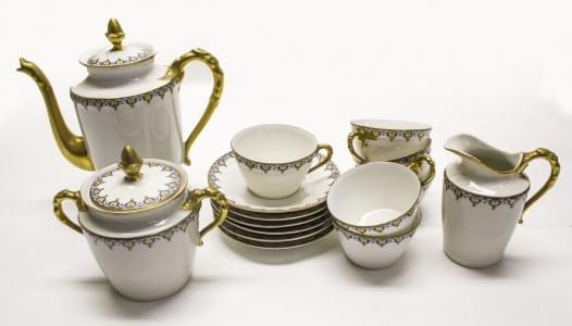 3154. Service à thé à décor blanc bleu de mûres et filet doré