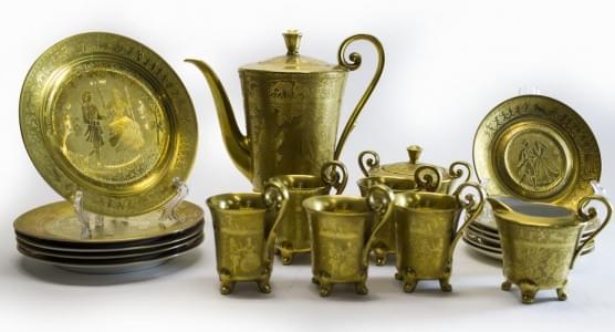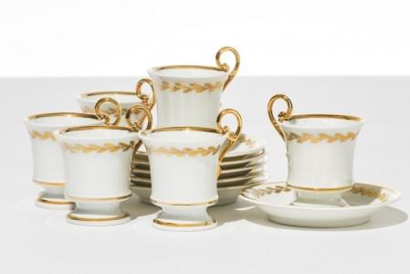 Karlsbaden, porcelaine or, 1921, comprenant : 5 tasses et sous-t...
