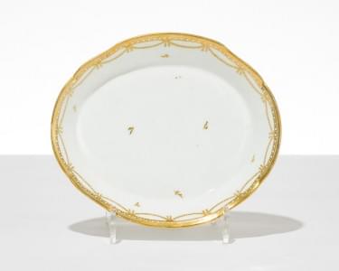 3136. Plateau ovale à décor doré de guirlandes
