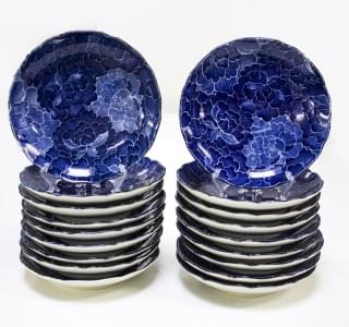 3137. Suite de 18 coupelles à décor blanc bleu de pivoines