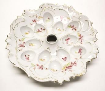 3138. Amusant présentoir à oeufs à bordure mouvementée et décor de fle...