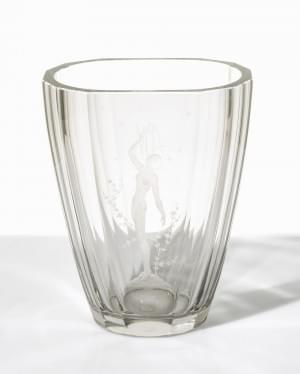 Cristal, fond plat et parois cannelées à décor d'une femme nue d...