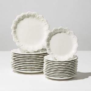 3170. Service à bordure mouvementée en faïence blanche