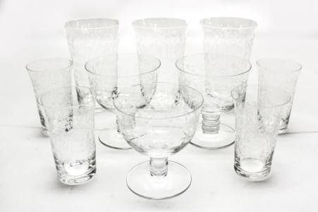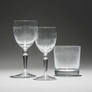 Cristal gravé à décor de rinceaux, composé de 15 verres à eau, 1...