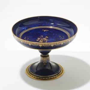 3180. Grande coupe sur pied bleu nuit et or à décor de lambrequins et...