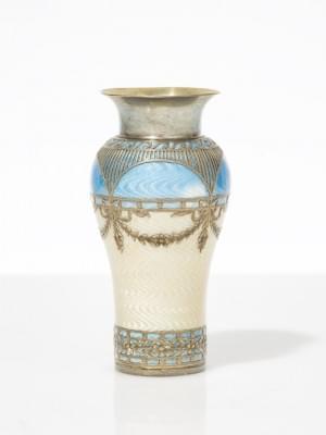 3195. Petit vase balustre à décor de guirlandes sur fond guilloché éma...