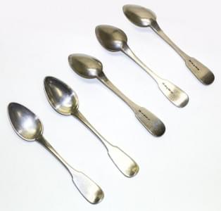 Métal argenté, comprenant : 5 couteaux, 5 fourchettes, 6 cuillèr...
