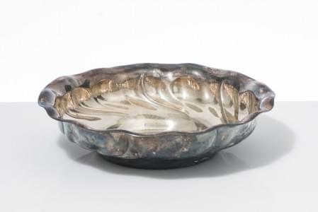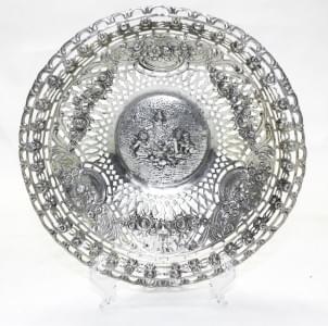 Métal argenté orné de coquilles, agrafes et phénix, D 30 cm