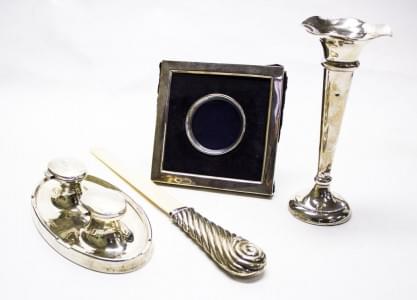 3225. 1 ouvre-lettres, 1 cadre carré, 1 soliflore et 1 encrier